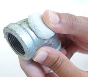 Two component, fiberglass reinforced, ready to use simply by cutting amount desired, kneading